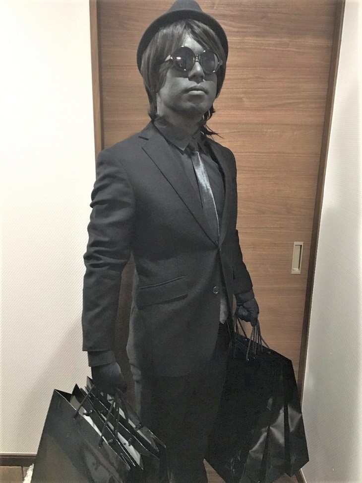 彫像のようにじっと動かず、時にお客様が近づくと不思議で面白い動きをする「静かな動きで”魅せる”芸」。